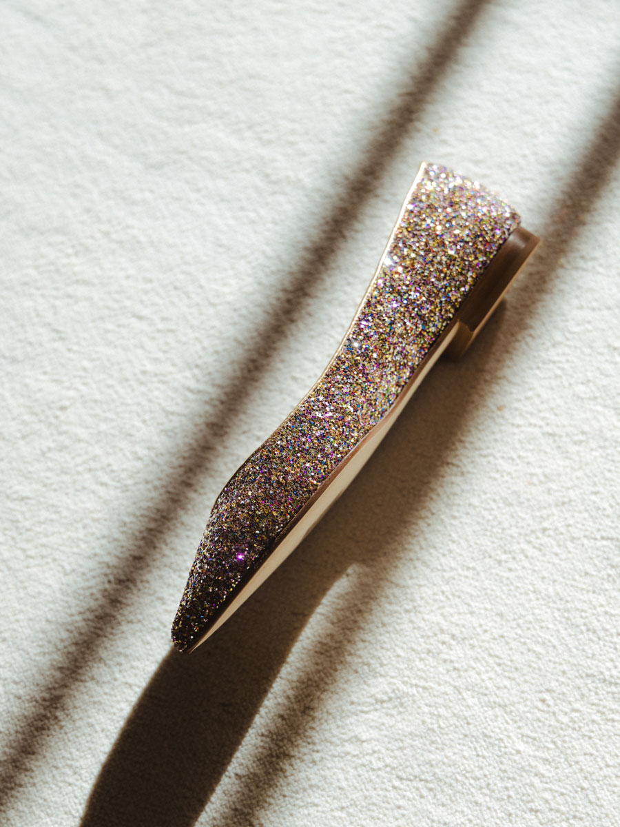 Obermaterial aus Leder mit bunten Strassteinen
