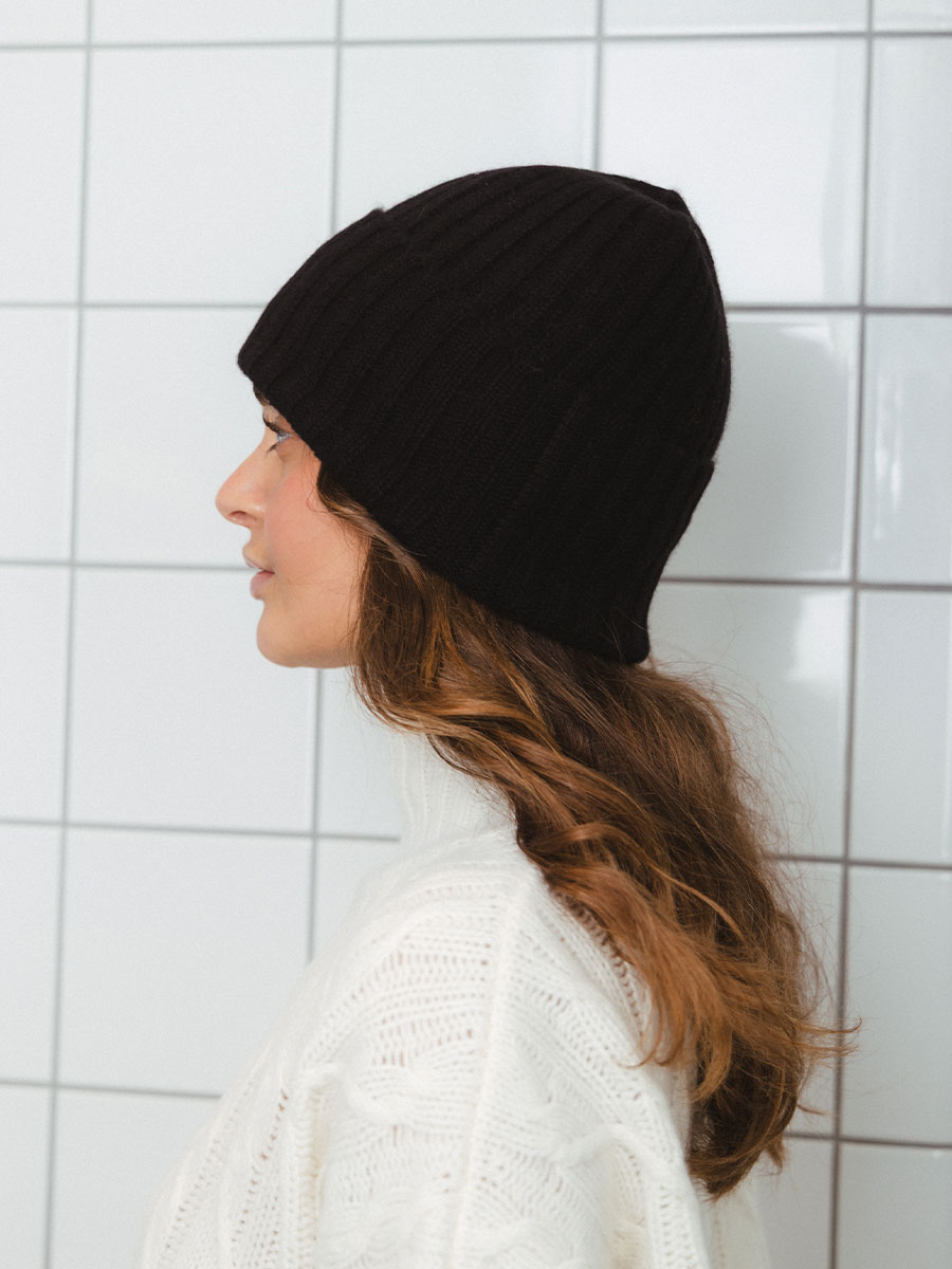 in Schwarz Feinstrick umgeschlagener Saum, kann auch offen getragen werden hochwertiger Kaschmir von Hand gefertigt