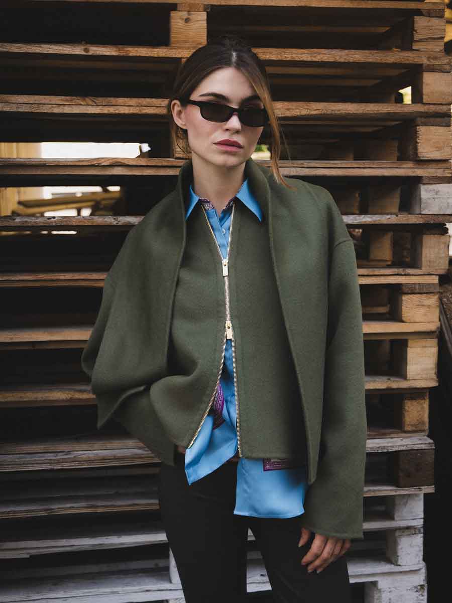 Passform: kastiger Schnitt, leicht Oversize, überschnittene Schultern, fällt etwas größer aus