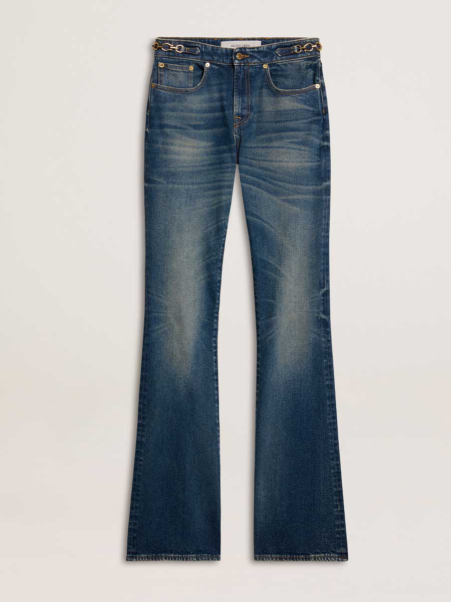 Passform: schmaler Schnitt, ausgestelltes Bein, hoher Bund