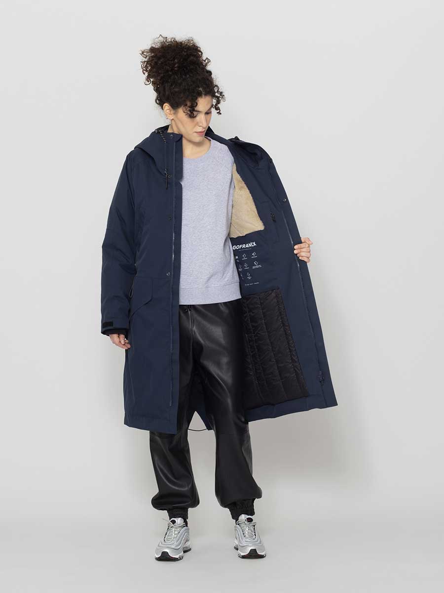 schließt mit 2-Wege-Zip und Drucknopfleiste