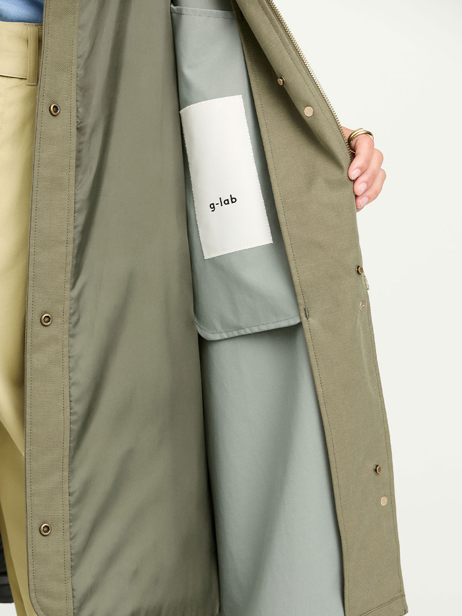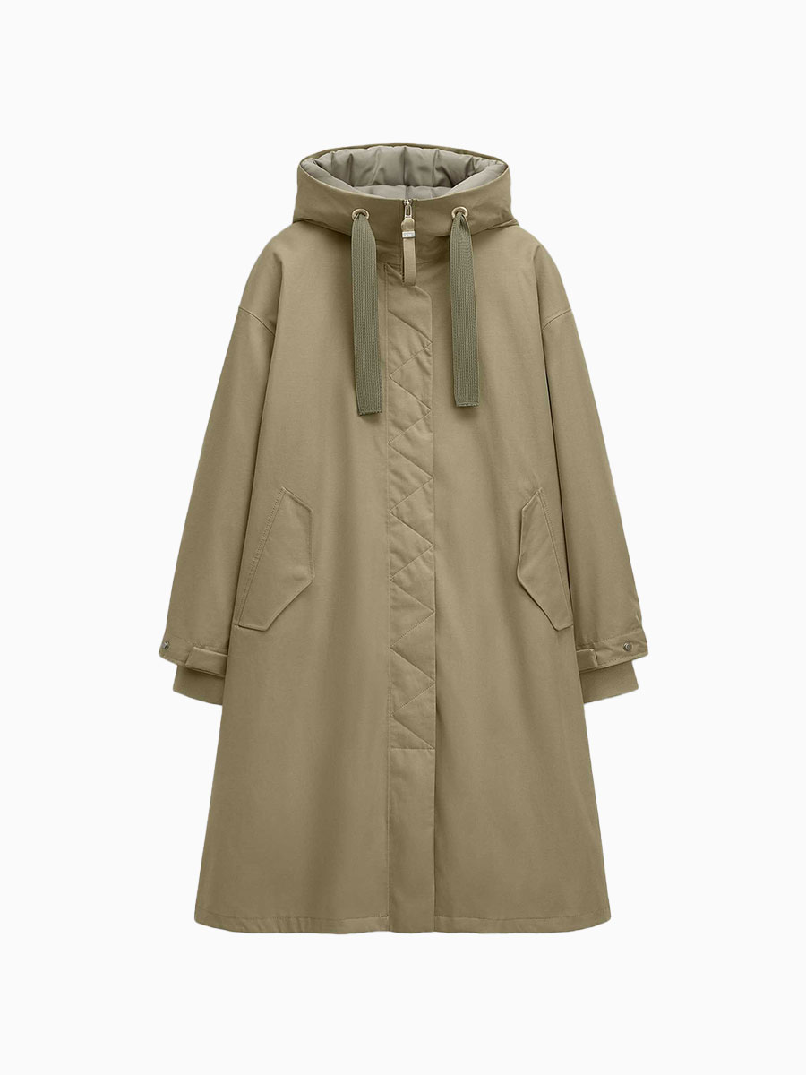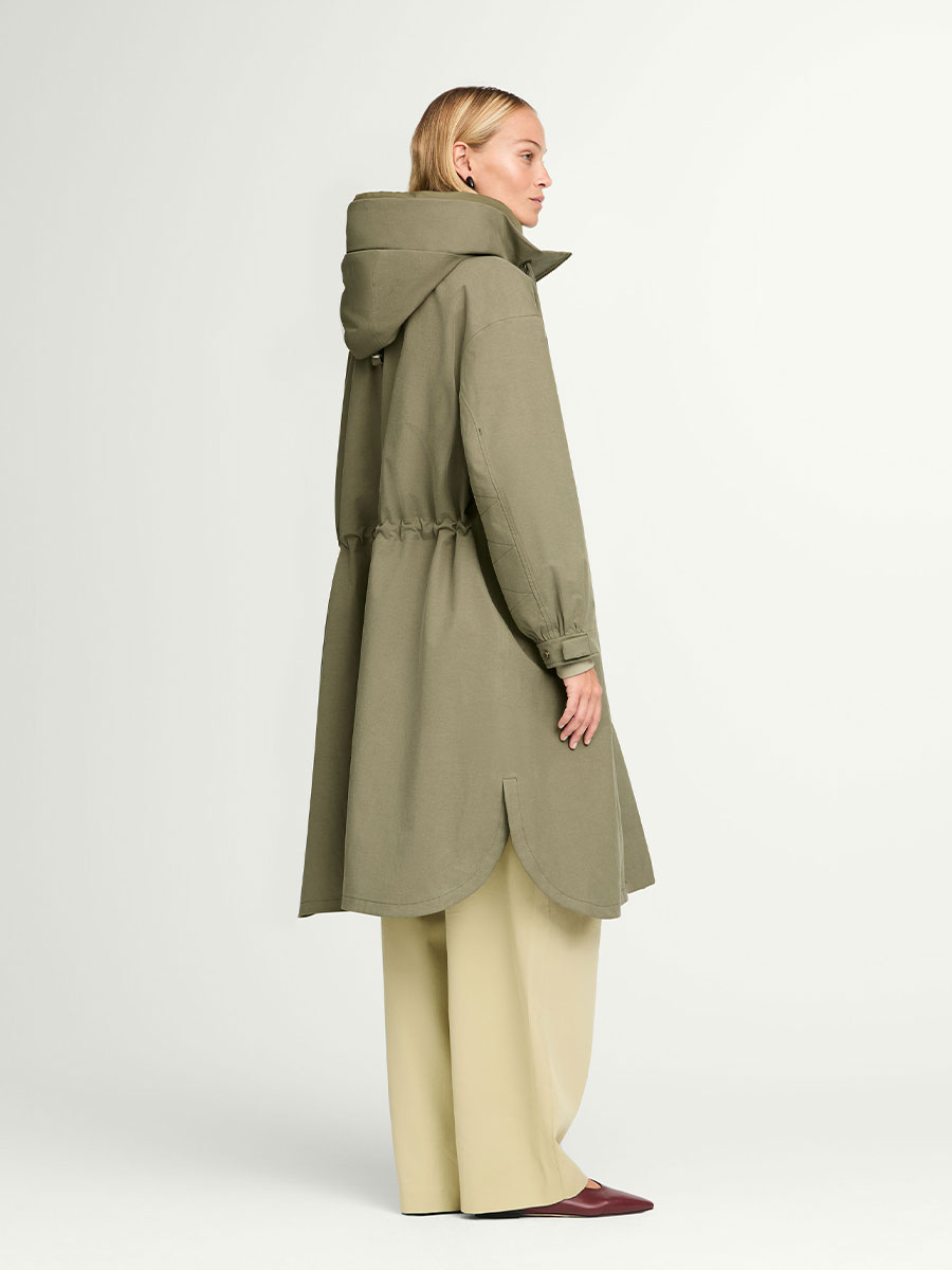73% Tencel, 15% Leinen, 12% Baumwolle; Membran: 100% Polyurethan; Innenmaterial: 100% Polyester; Futter: 100% recyceltes Polyester; Wattierung: 100% recyceltes Polyester
