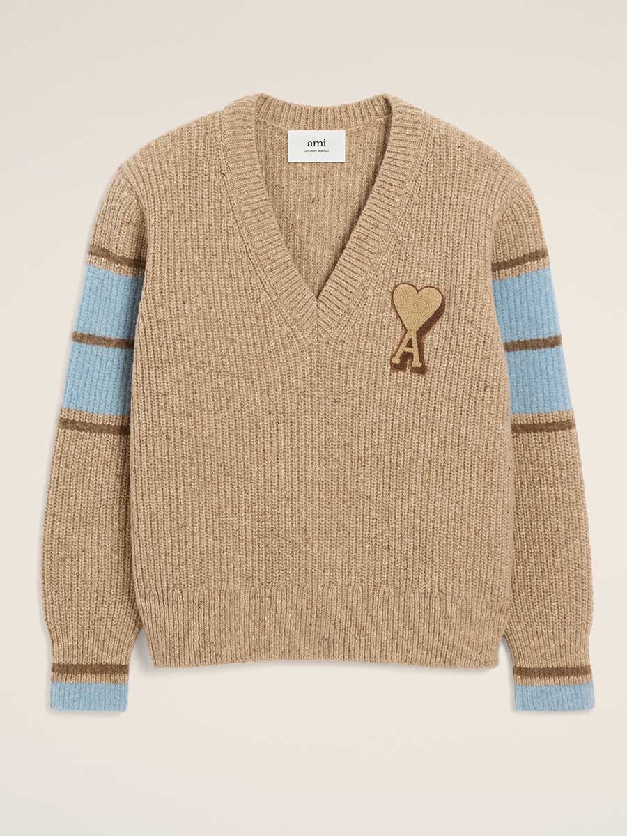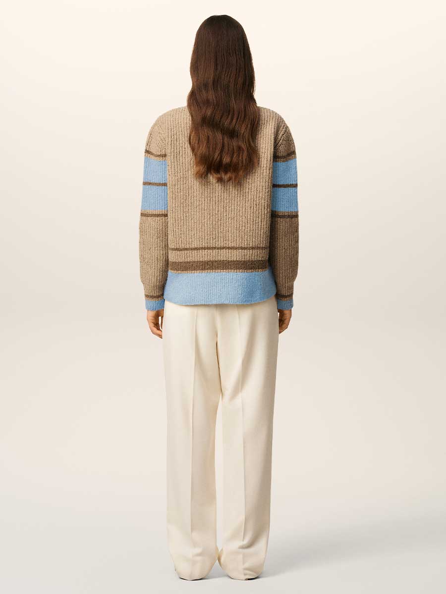 in Camel, mit hellblauen Streifen