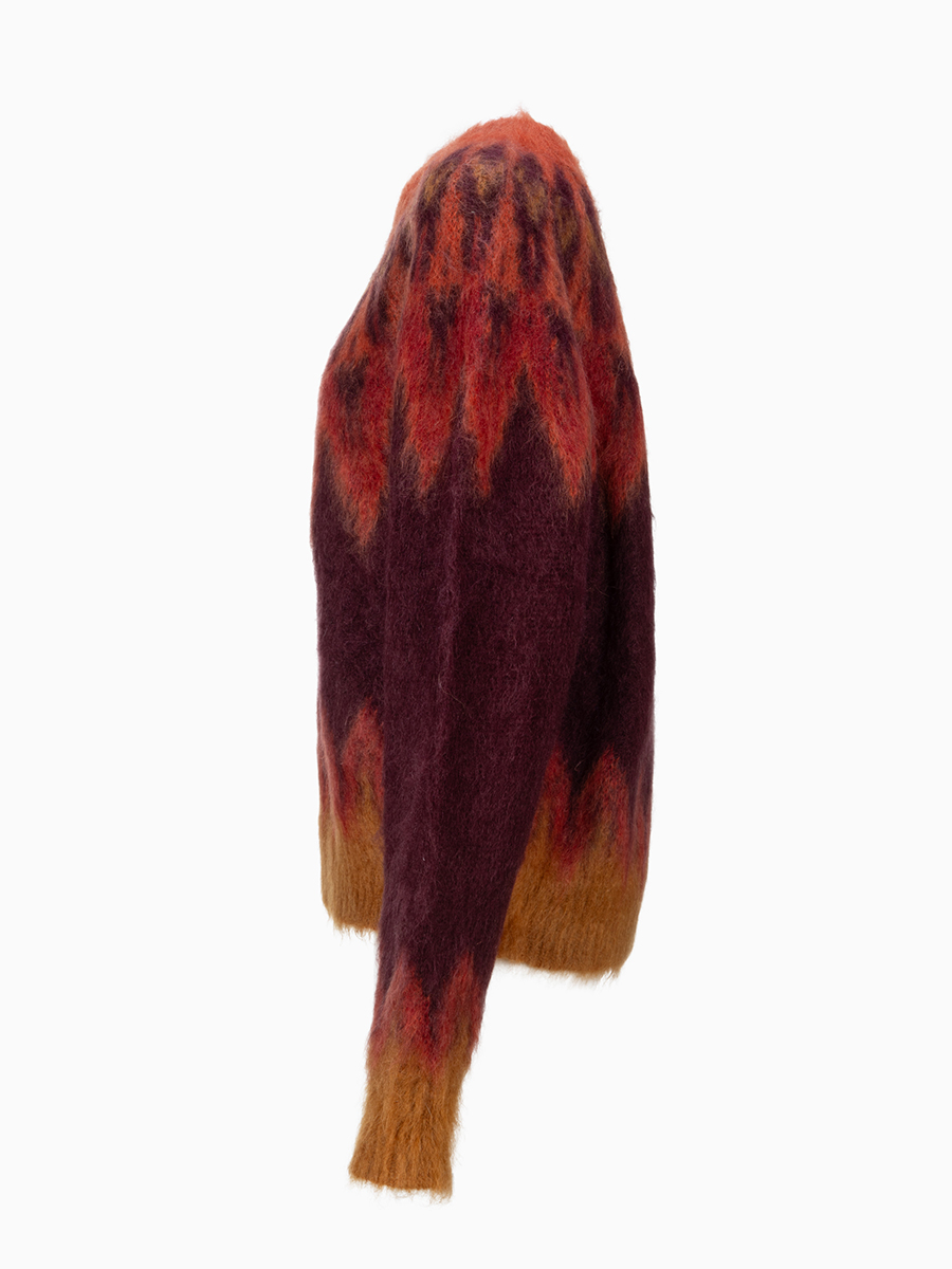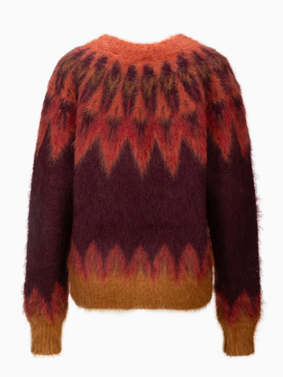 in Bordeauxrot und Orange, mit all over Jacquard-Muster