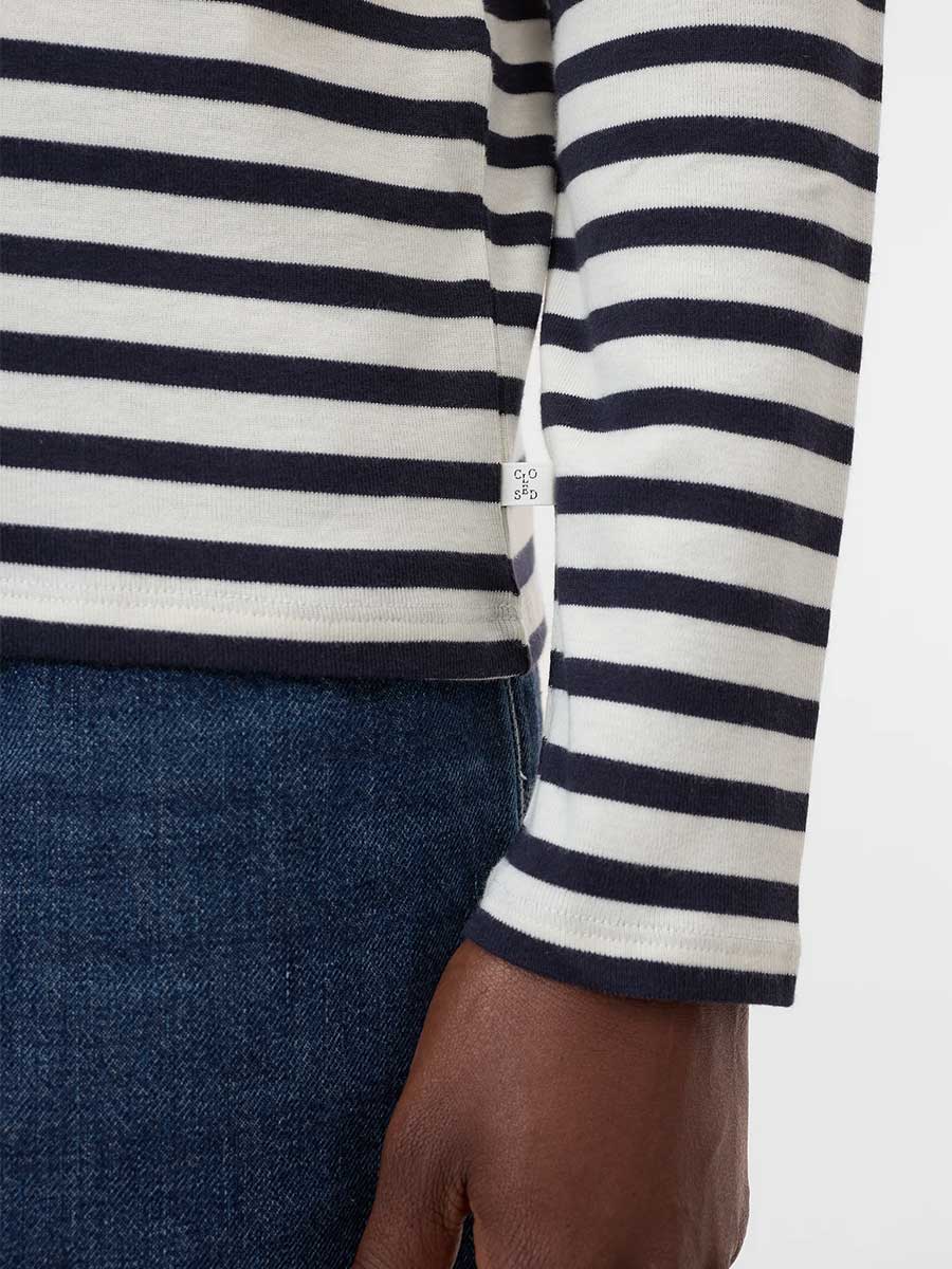 in Dunkelblau und Weiß gestreift
