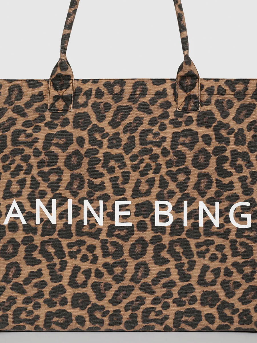 in braun-schwarzem Leo-Muster mit weißer Anine Bing-Aufschrift große Henkel